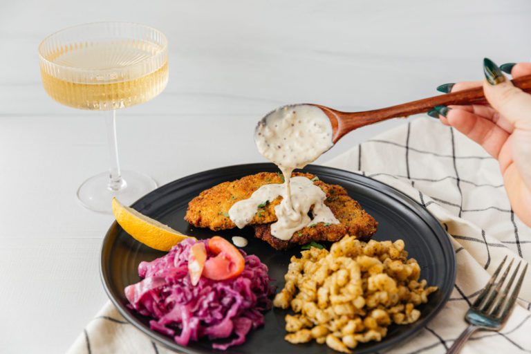 PORK SCHNITZEL WITH MUSTARD CREAM SAUCE